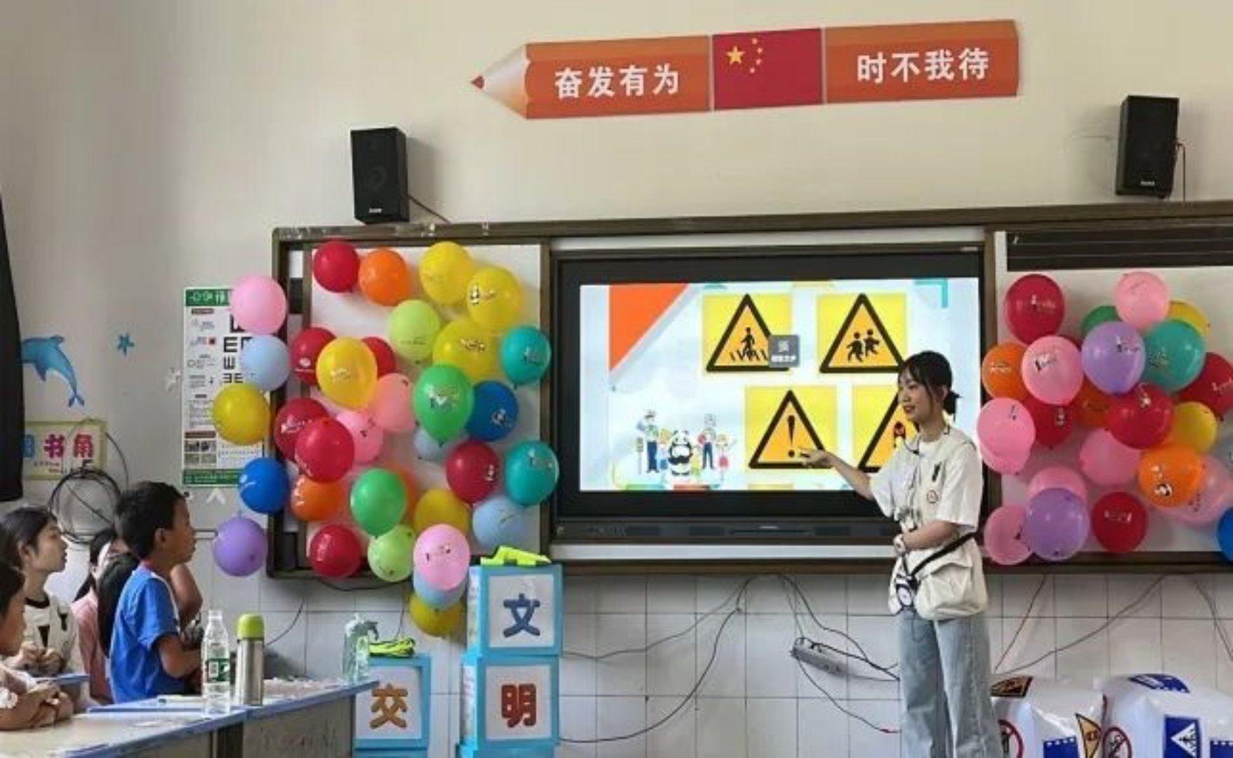 为了孩子们在上学路上和户外活动时的安全,增强同学们的交通安全意识,队员们还准备了一堂生动形象的交通安全知识课。讲解交通安全知识、参与交通安全小游戏、辨识交通指示标识等课程设计吸引了孩子们的关注与积极参与,课程讲授使他们基本上掌握了交通规则,增强了安全意识。